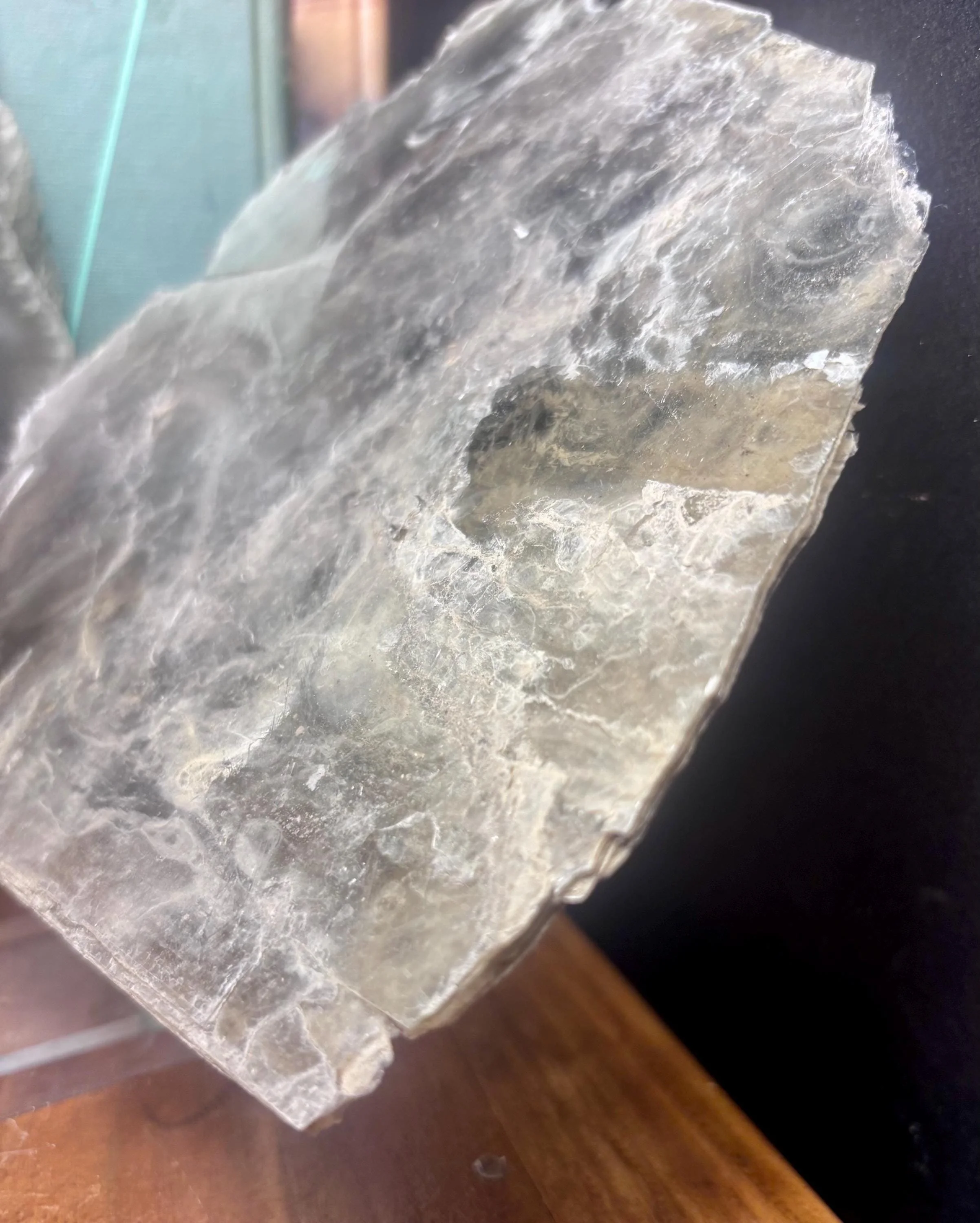 A striking sheet of natural mica with a silvery luster and crisp, layered texture. Sourced in Georgia, this piece is thin yet firm—perfect for display or adding a reflective touch to your collection. ⸻ - Approx. 8” x 7” - Ethically sourced in Georgia, USA - Natural silver sheen with defined layering - Ships flat — stand not included ⸻ Mica is believed to enhance mental clarity and support inner reflection, making it a powerful addition to a mindful space. With its mirror-like surface and grounding energy, it invites stillness and encourages an honest look within—both literally and energetically.